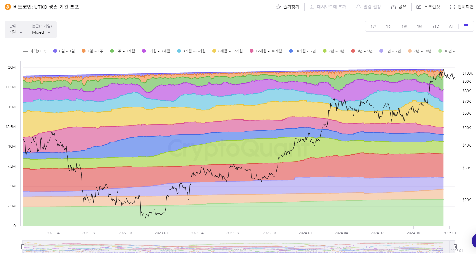 차트: https://cryptoquant.com/ko/asset/btc/chart/network-indicator/utxo-age-bands