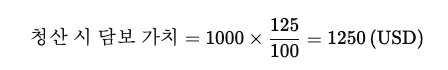 → 담보 1 ETH의 가치가 $1,250로 하락하면 청산 발생.