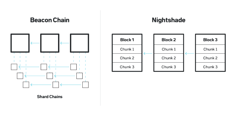 NEAR Protocol의 핵심 기술 중 하나는 샤딩입니다. 샤딩은 네트워크를 여러 개의 하위 네트워크(샤드)로 나누어, 병렬로 트랜잭션을 처리함으로써 확장성을 크게 개선하는 기술입니다. 특히, NEAR는 독창적인 나이트셰이드(Nightshade) 방식을 사용하여 블록체인을 여러 조각으로 나누어 처리합니다. 나이트셰이드 방식은 초당 최대 100,000건의 트랜잭션을 처리할 수 있는 이론적 성능을 자랑합니다.