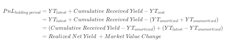 PnL = (수령한 누적 수익 - YT 감가된 가치) + (현재 시장 가치 - YT 미감가된 가치)