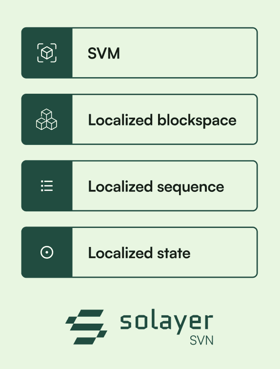 Solayer는 이와 같은 Solana의 수직적 확장성 개념을 확장하여, 애플리케이션 네트워크의 요구사항에 맞춘 맞춤형 블록 공간 및 실행 환경을 제공합니다. 특히 Solayer는 애플리케이션 개발자들이 더 많은 트랜잭션 처리량을 확보하고, 다른 애플리케이션과의 블록 공간 경쟁을 최소화할 수 있도록 로컬 블록 공간을 제공합니다.