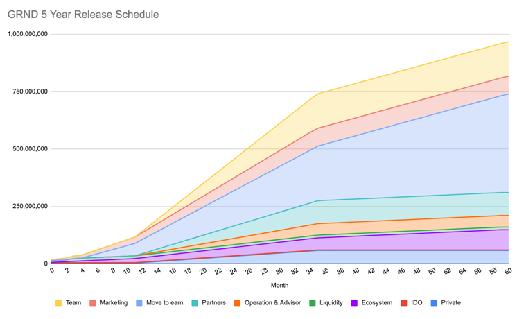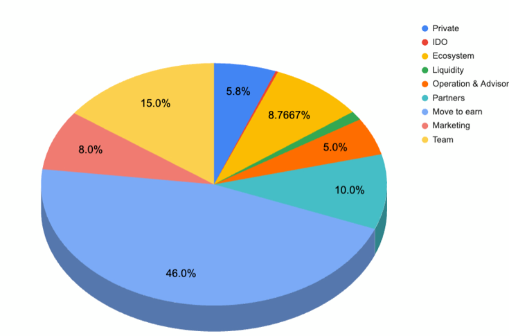 | Move to Earn | 46.00% | 460,000,000 | 5개월 락업, 60개월 분배 |